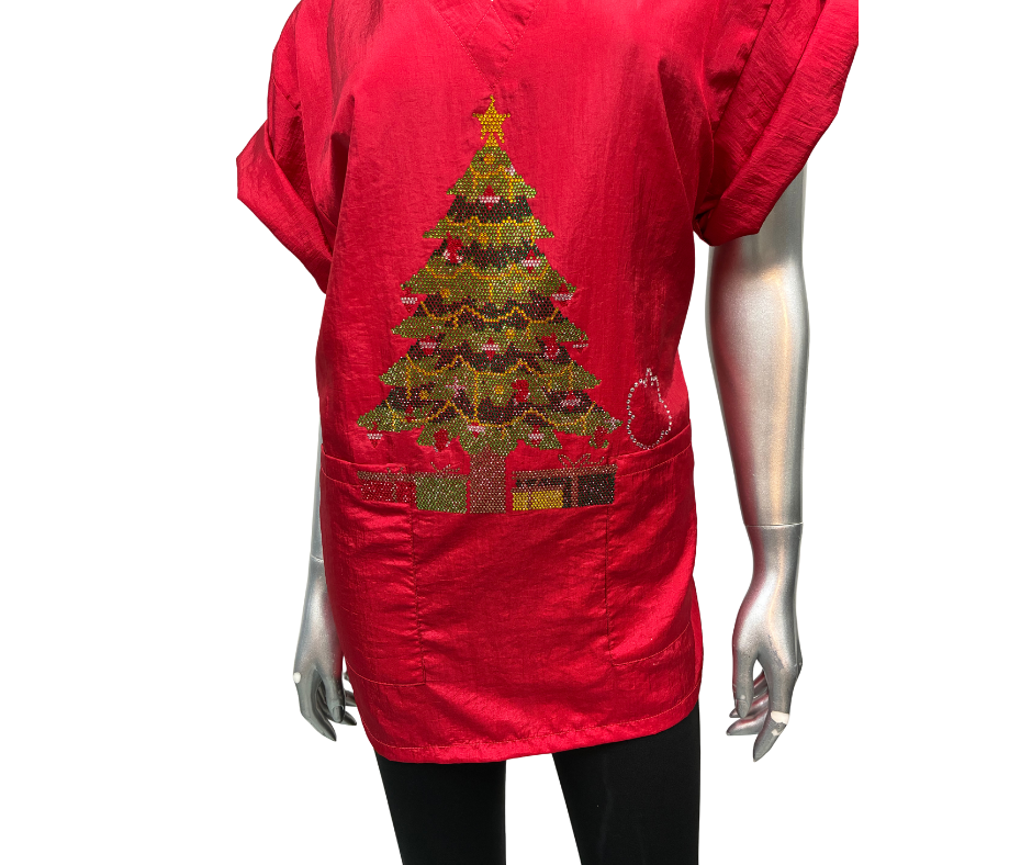 Bring holiday cheer to your workday with our Rhinestone Christmas Tree Motif, designed to add sparkle and festive style to your everyday scrubs! This dazzling tree design features shimmering rhinestones that capture the joy of the season while keeping you looking polished and professional.