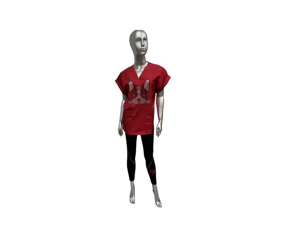 Add a playful touch to your scrub tops with our Rhinestone Frenchie Motif! Tested to last through 50+ washes without fading or peeling, this durable and stylish design keeps you sparkling on the job.