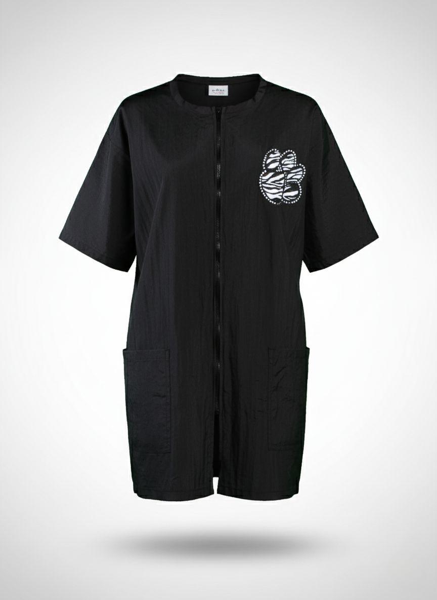 Stylist Jacket with Paw – XS, S, M, L, XL, 2XL, 3XL, 4XL, 5XL. This is our most versatile and popular jacket. Designed with dolman style sleeves for ease of movement, two side front pockets and paw on the upper left chest which is also outlined in clear rhinestones.
